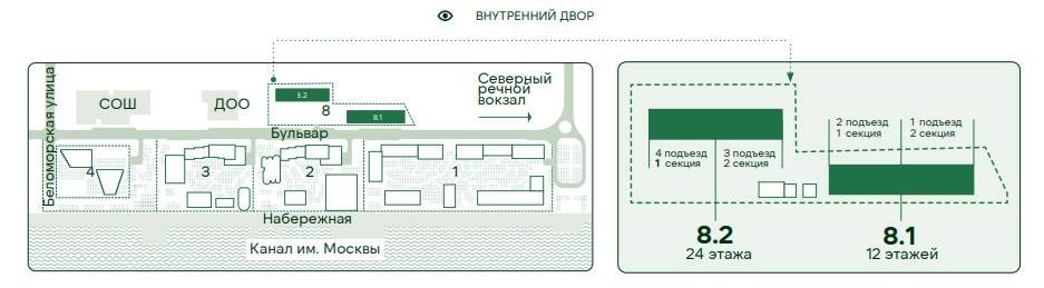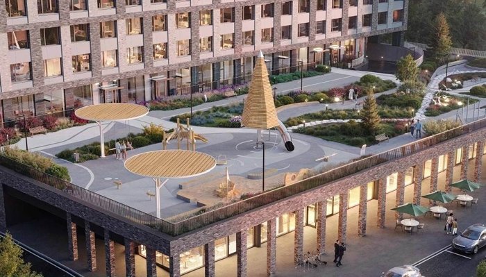 Жилой комплекс - город-курорт площадью 14 гектар с тремя линиями жилых домов, бульваром и прогулочной набережной, перетекающей в променад Северного вокзала.